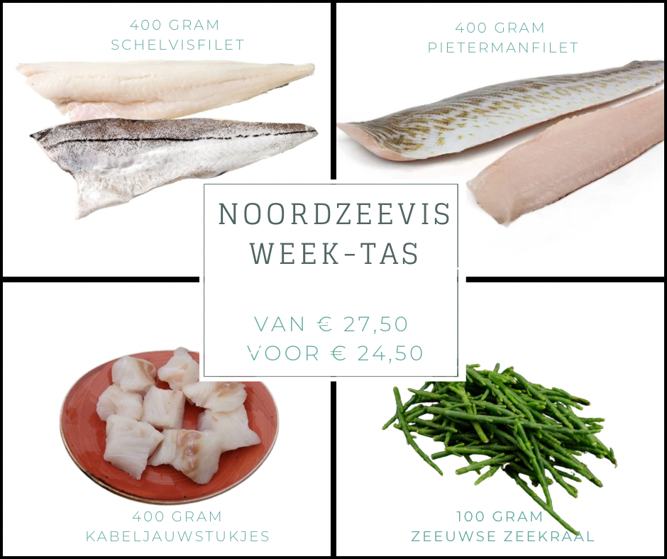 - 400 gram pietermanfilet- 400 gram kabeljauwstukjes- 400 gram schelvisfilet- 100 gram Zeeuwse zeekraal
